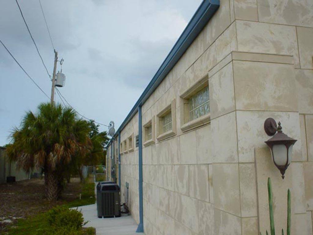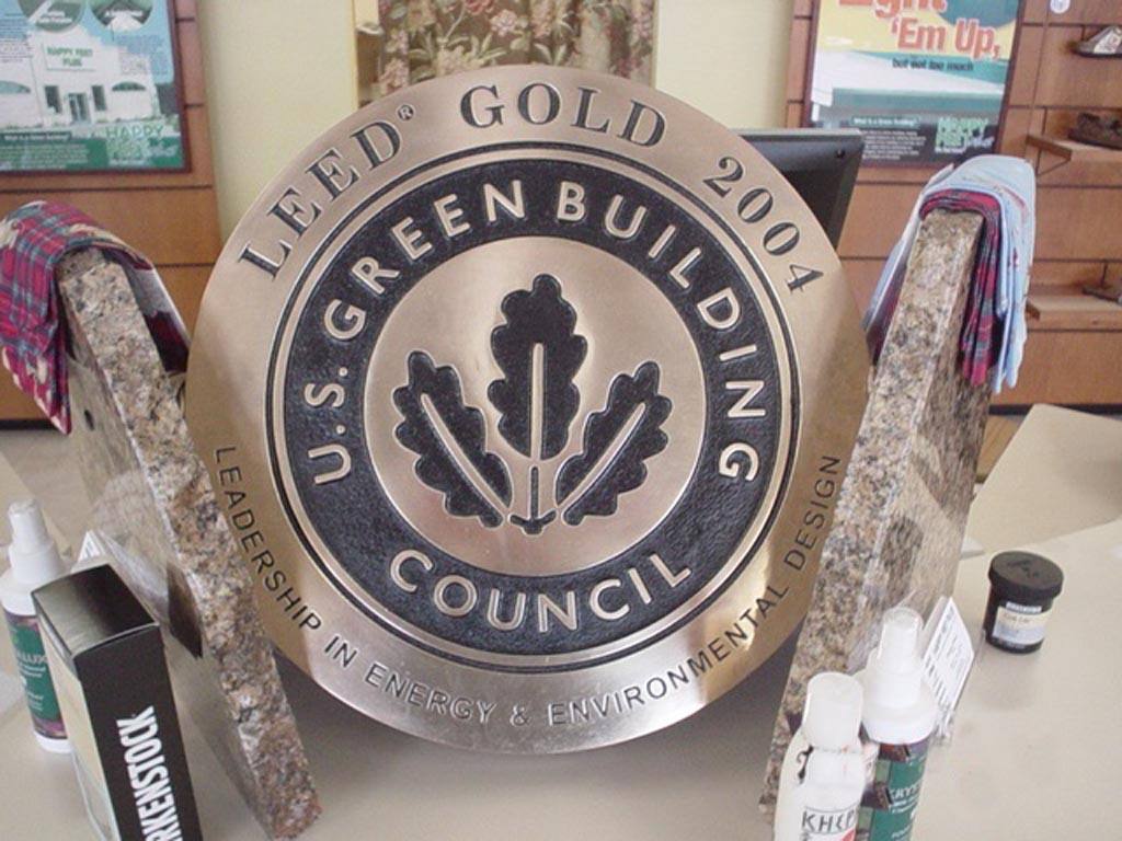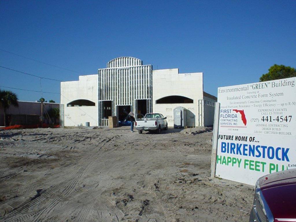 This is the first building we cast with the 'Green Stone' mix in 2003. Happy Feet was the first commercial/retail building in the country to receive the "Gold" Certification Award, built in accordance with the U.S. Green Building Council's Leadership in Energy & Environmental Design (LEED) standard.